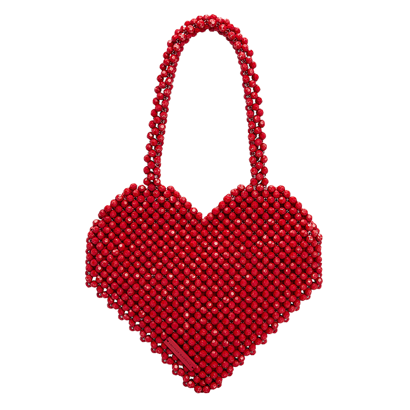 This beaded heart bag (made of plastic beads) is an exemplification of modern and playful. We're loving its bright and happy vibe -- the perfect way to cheer up an everyday look.