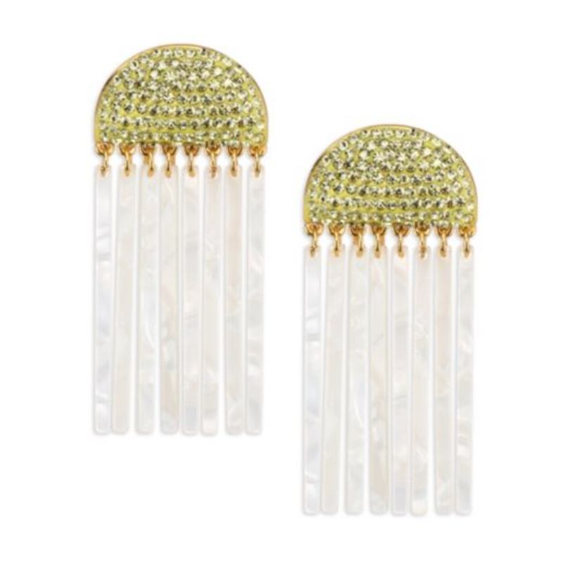Two other items we count on when we’re feeling festive? A great pair of earrings is our choice in jewelry, not only because statement earrings are having a moment right now, but because they add instant impact by lighting up the face and drawing attention to makeup in the form of a bold or glossy lip or shadowed, lashed, and lined eye.