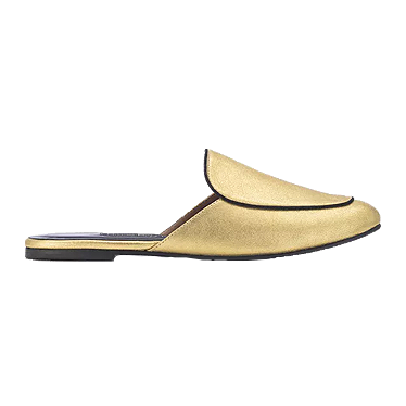 a relaxed take on our minimal and feminine LIZA loafer, this golden calf leather mule has a beautifully curved lid and black piping. perfectly paired with crop jeans, trousers, or slip dresses. - gold metallic uppers - black piping - cognac lambskin lining - black leather outsole - padded insole for extra comfort - heels measures approximately 0.25” - NewbarK is handmade in Los Angeles, California